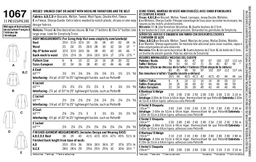 Simplicity 1067 Learn To Sew Women S Jacket And Coat Sewing Pattern Sizes 14 22 Amazon In Home Kitchen